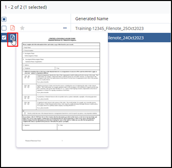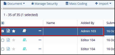 - Select a document by checking the checkbox.