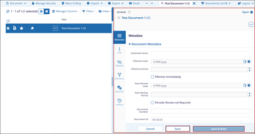 - Click Save & Next to edit metadata for the next document in the grid.