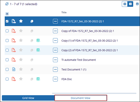- Select a document from the grid by clicking on the checkbox.