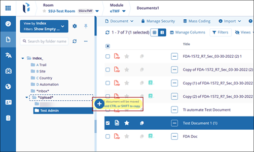 Users with necessary access permissions can drag and drop documents from one folder to another. Dragging and dropping documents across folders will not alter the metadata applied to the document. However, if a document manually copied from one folder to another, users need to re-code the document.
