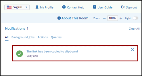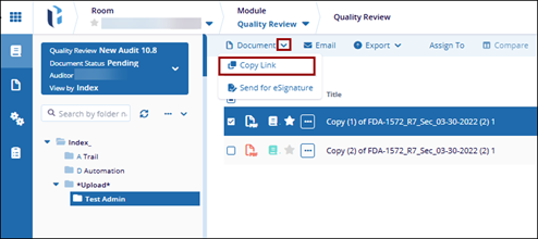 The Copy Link option generates a URL for the selected document, allowing it to be distributed to other users.
