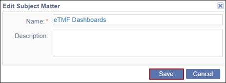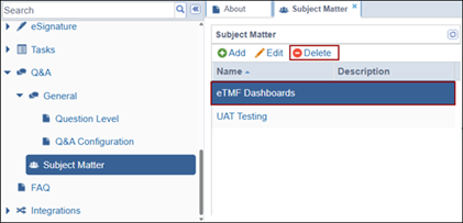 - The Subject Matters panel from which subject matter categories can be added, edited, and deleted.