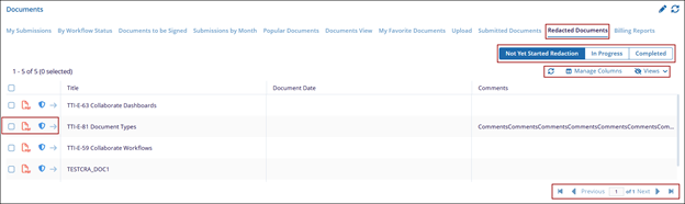 - In the Documents Dashboard, select the Redacted Document tab, where documents undergoing redaction are listed.