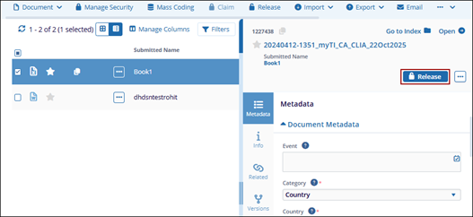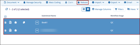 - To release multiple documents, select the documents and click Release button