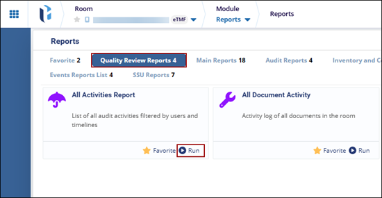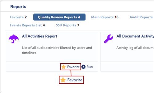 - To add a report as a favorite, click on the Star icon next the Run button.