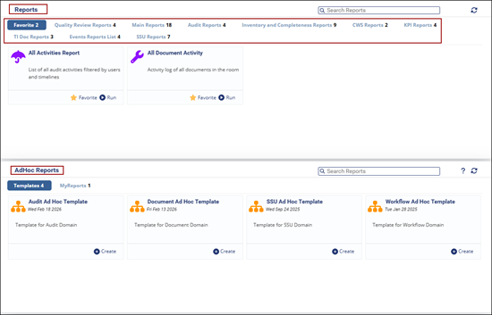 - Reports: These include Favorite, Quality Review, Main Reports, Audit Reports, KPI Reports, Inventory and Completeness Reports, CWS Reports, KPI Reports, TI Doc Reports, Events Reports List and SSU Reports, etc.