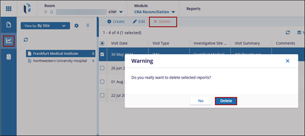- Select the reconciliation report from the list and click Delete from the top menu bar.