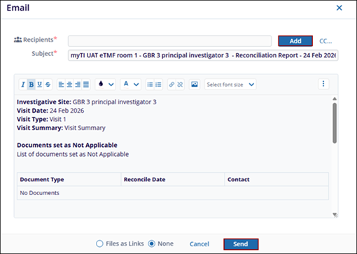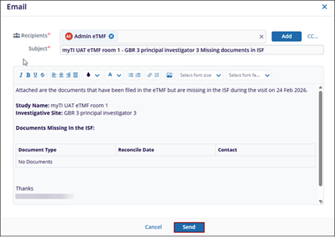 - Verify the documents within the email body and click Send.