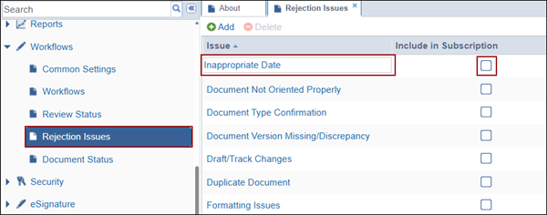 - On the Rejection Issue page, click +Add.