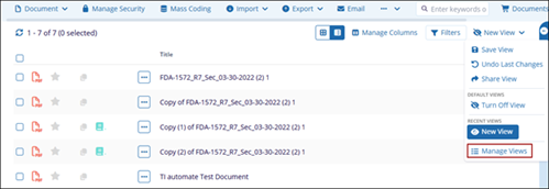 - Once the view is saved, it will be available in the list of all views. This list is accessible from the Views dropdown menu at the top-right of the Grid.