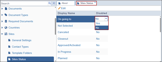 To enable or disable the site statuses, follow the steps below: