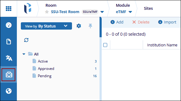 To access the Sites modal in eTMF, follow the steps below.