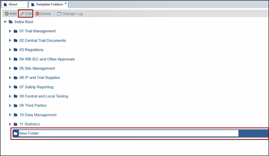 - Click +Add on the Template Folders page. A new folder naming field opens, temporarily named New Folder.