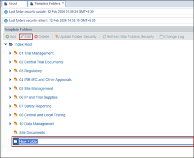The Template Folders panel is a crucial tool for generating the folder structure where all Investigative Sites' documents will be stored during the study. The structure created here follows the guidelines provided in the Configuration Manual.