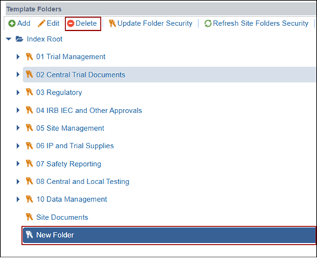 - In the Template Folders window, select the Index Root folder to add a folder at the same index level.