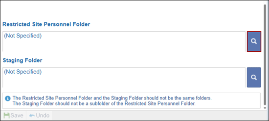 - Click the search icon next to the Restricted Site Personnel Folder text box.