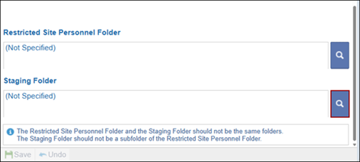 - The Restricted Site Personnel Folder and the Staging Folder should not be the same folders.