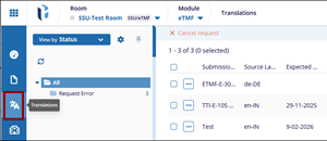 Translations enables users to manage and track document translation requests within the system. It provides visibility into source and target languages, request status, deadlines, and associated workflows, ensuring efficient coordination and completion of multilingual content.