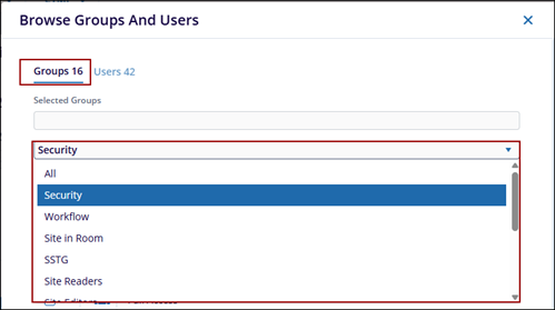 - In the Browse Groups and Users window, switch between the Groups and Users tabs and select the desired groups or users.