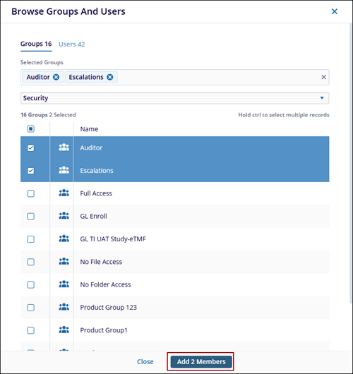 - After selecting the required groups or users, click the Add (number of members)