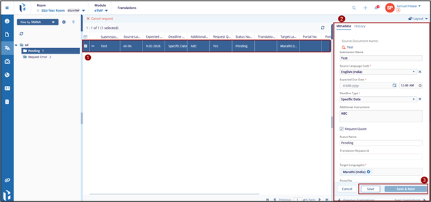 - Click on a translation request from the list.