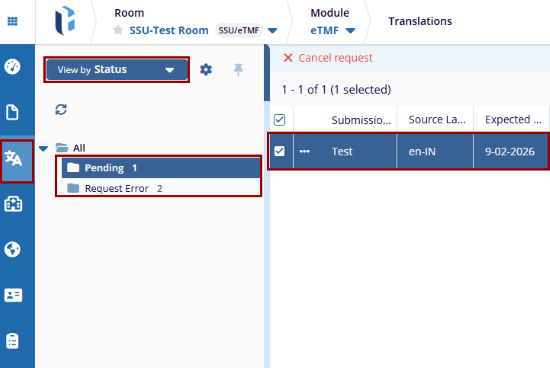 Follow the steps below to view the translation request by Status: