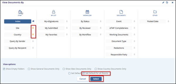| Document Type | Displays documents grouped by Trial, Country and Site. |